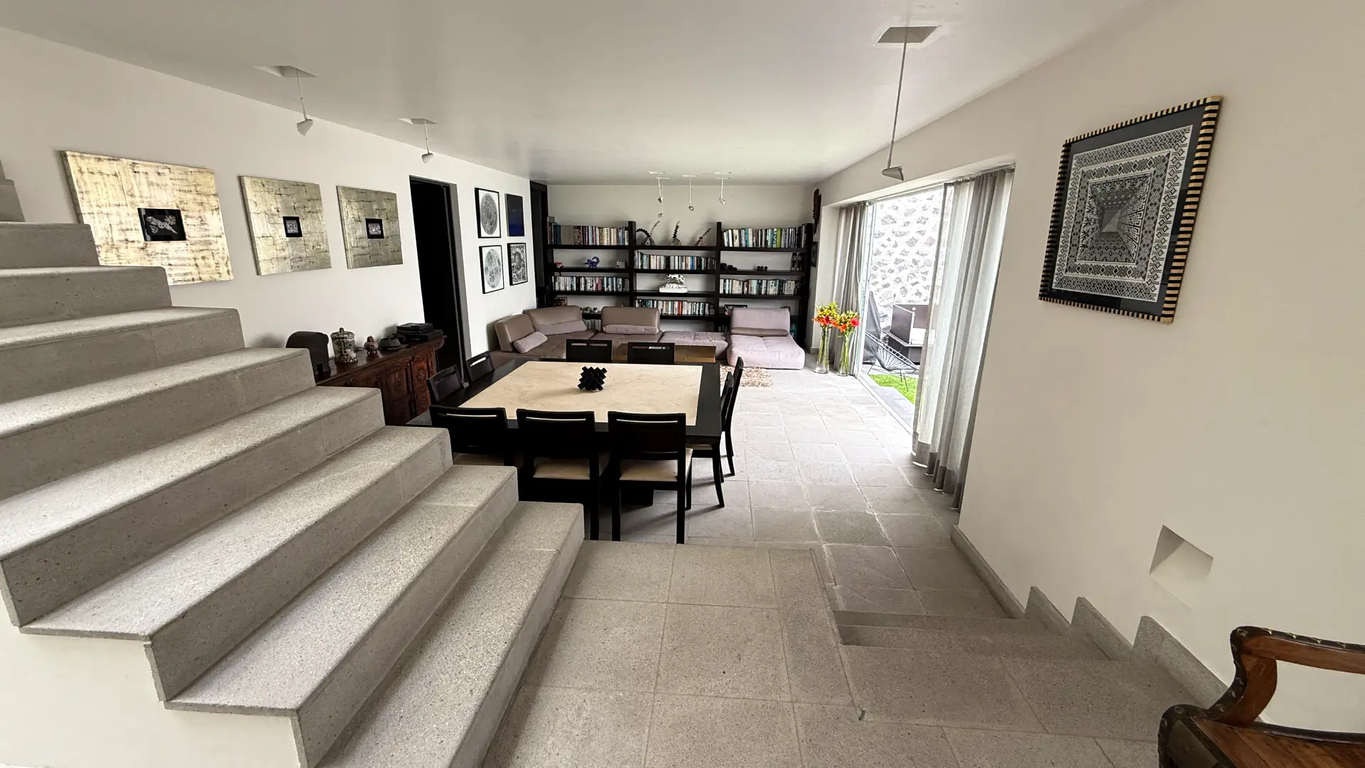 La zona social integra sala y comedor con vista al jardín, ideal para recibir con elegancia. A la entrada, una oficina independiente y medio baño aportan funcionalidad. La amplia cocina con desayunador, área de lavado y cuarto de servicio cuenta con doble acceso para una operación impecable. En el nivel íntimo, tres recámaras con baño completo y vestidor se complementan con family room, terrazas y un jardín trasero privado para asados.